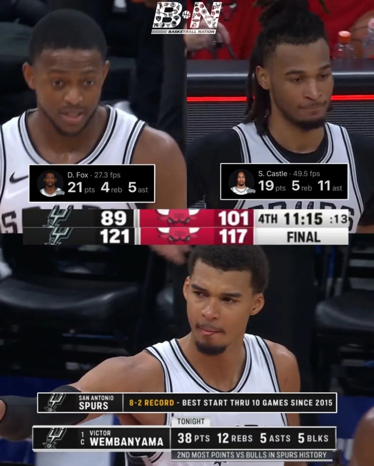 Sau pha kiến tạo này, Spurs đã thổi còi phản công, và sau đó Wenbanyama ghi 18 điểm trong hiệp cuối cùng để giúp Spurs đảo ngược thành tích của Bulls.