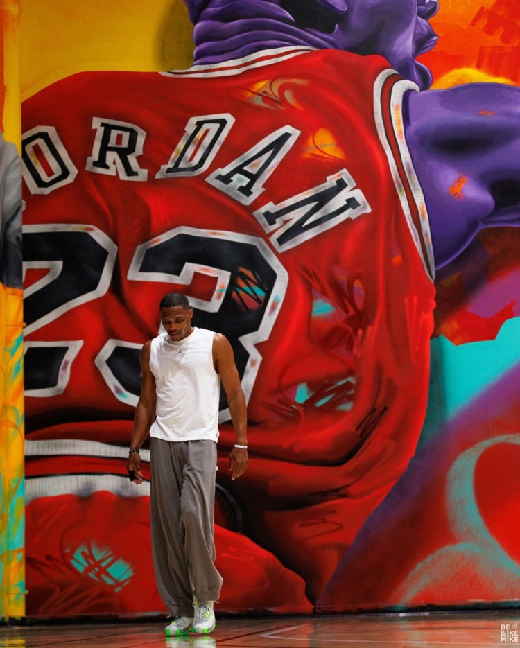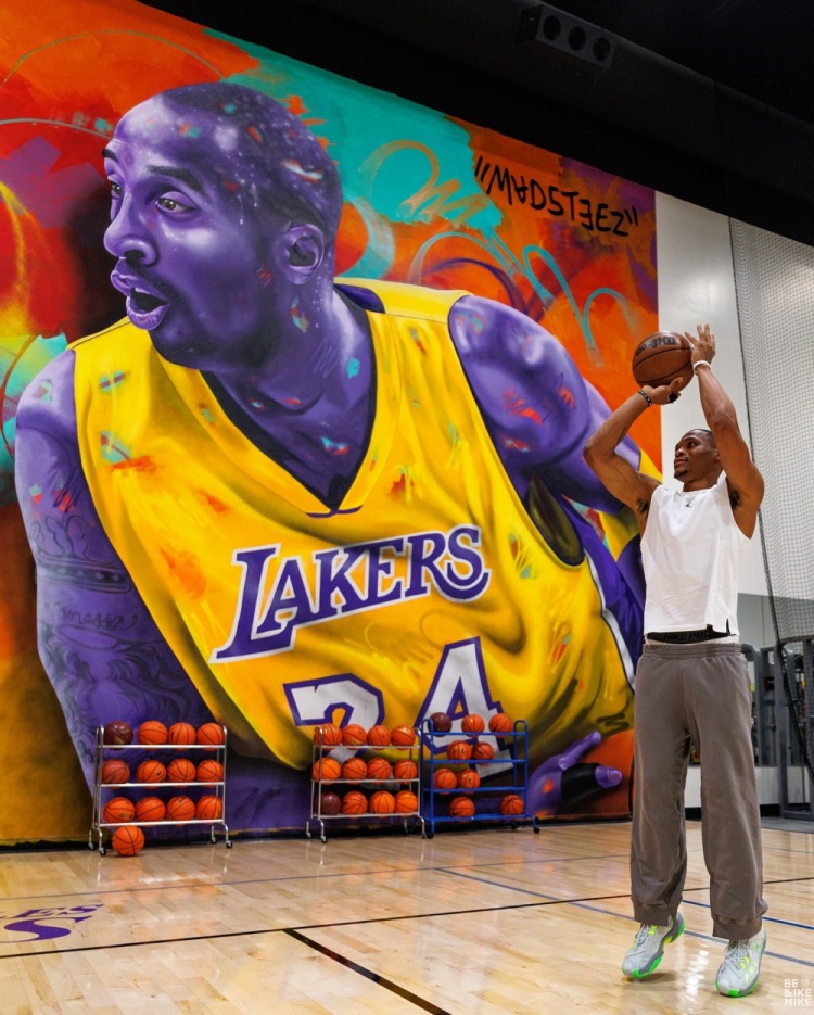Hôm nay, nhiếp ảnh gia ở nước ngoài Michael Ade Ojo và Công ty Westbrook Russell Westbrook Enterprises đã cùng nhau đăng một bộ ảnh đào tạo về Westbrook. Bức tường nền với hình ảnh của Kobe và Jordan trong phòng huấn luyện đặc biệt bắt mắt.