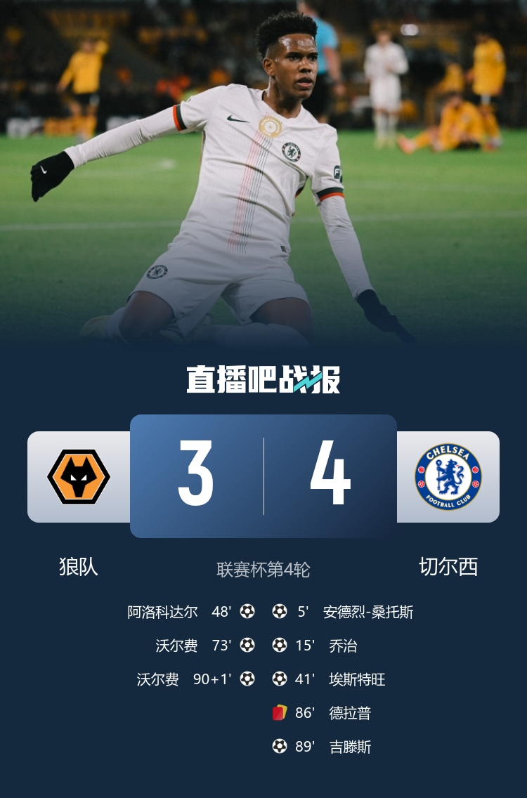 Ở vòng 4 League Cup, Chelsea suýt đánh bại Wolves 4-3. Delap cầm thẻ đỏ và Santos, George, Esteban và Gittens ghi bàn.