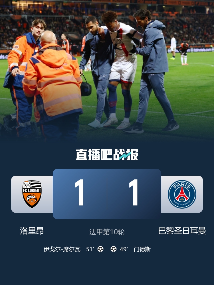 Paris hòa Lorient 1-1 ở vòng này. Nuno Mendes ghi bàn. Một tin xấu nữa là Douai đã bị thương.