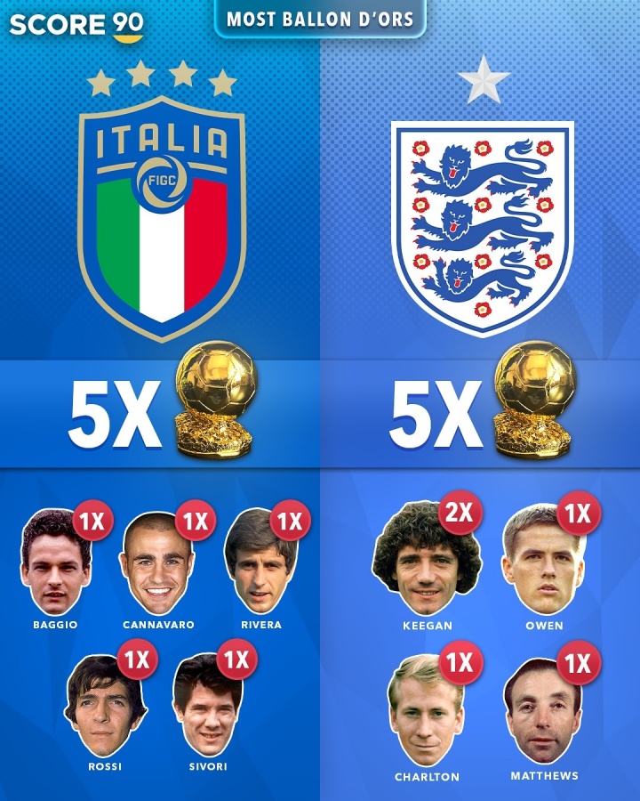6. Ý 5 lần (Baggio, Cannavaro, Rivera, Rossi, Sivori X1)